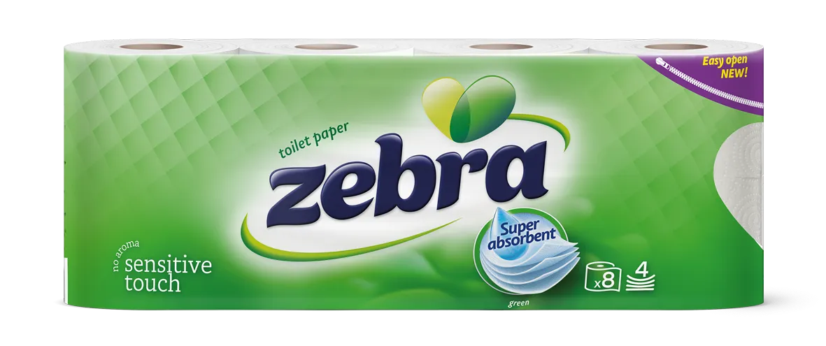 - Zebra Color Green Туалетная бумага 8 рулона 4 слойная