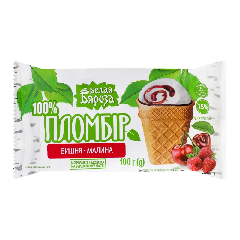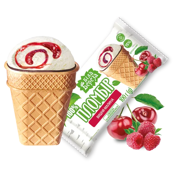 - Мороженое пломбир в вафельном стакане с глазурью Вишня-малина Белая Бяроза 100г