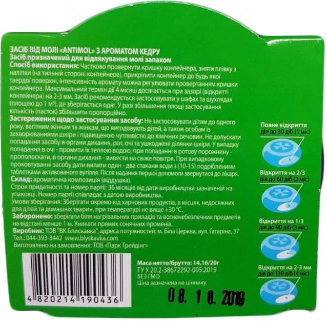 Средство от моли Antimol с ароматом кедр, предназначен для отпугивания моли запахом.