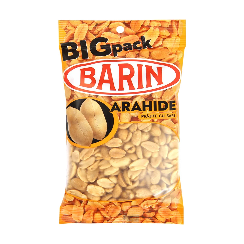 Арахис BARIN жареный с солью (BIG pack) — очищенные ядра, очень хрустящие, равномерно прожаренные с умеренным количеством соли. Отличная закуска в кино, в дороге, на работе и для сырных тарелок; подходит также для салатов и орехово-фруктовых миксов.