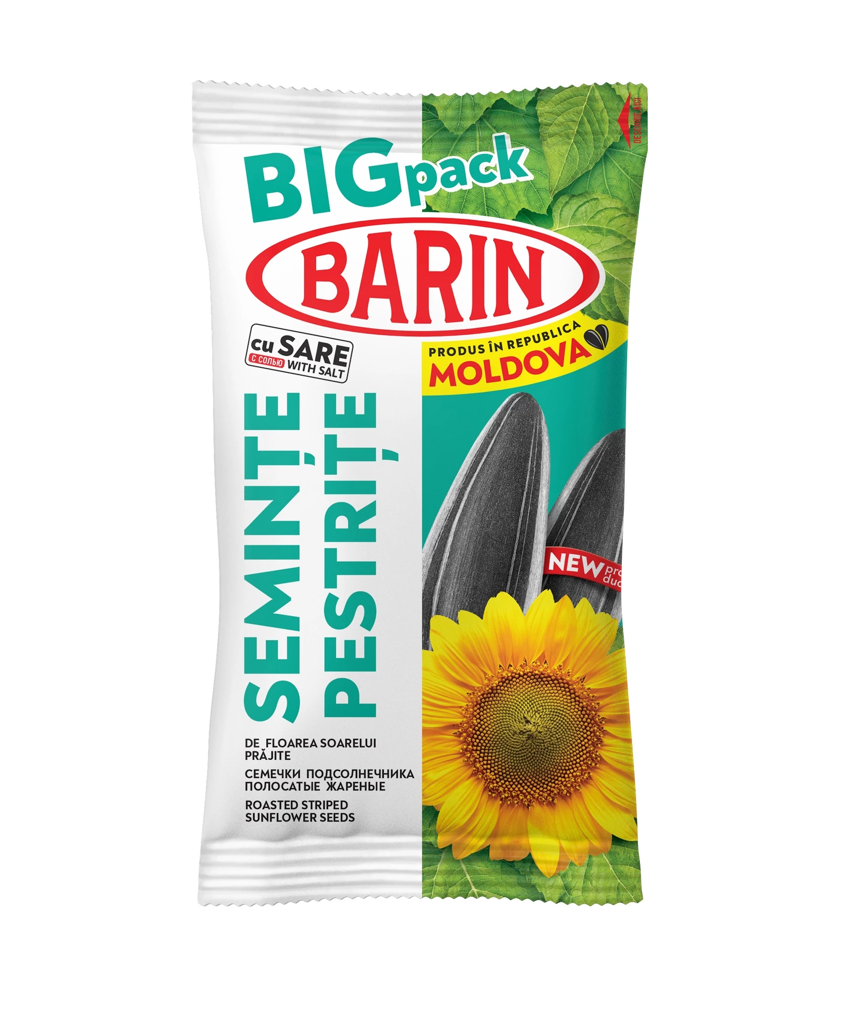 Полосатые семечки подсолнечника BARIN с солью — жареные в шелухе, хрустящие и ароматные, формат BIG pack. Сбалансированная соль; отличный перекус в дороге, в кино или на работе. Природный источник клетчатки и витамина Е. Произведено в Республике Молдова.