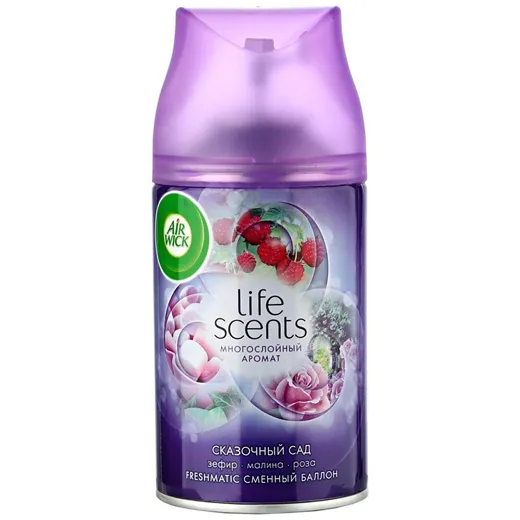 В аромате Air Wick Freshmatic Mystical Garden сочетаются запахи цветущих роз и спелой малины с добавлением мягких ароматов зефира.