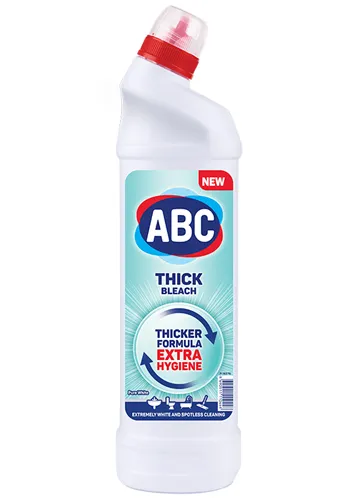 ABC Ultra Concentrated Bleach обеспечивает дополнительную гигиену и очистку поверхностей в течение более длительного времени благодаря своей концентрированной вязкости и эффективной системе защиты.