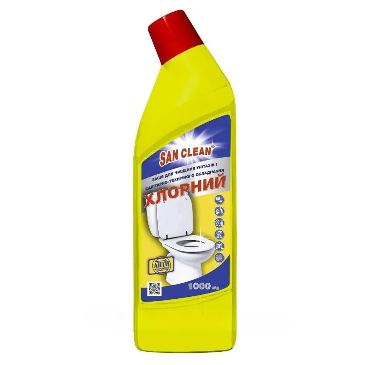 San Clean Средство для чистки унитазов и санитарно-технического оборудования, хлорный, 1000 г