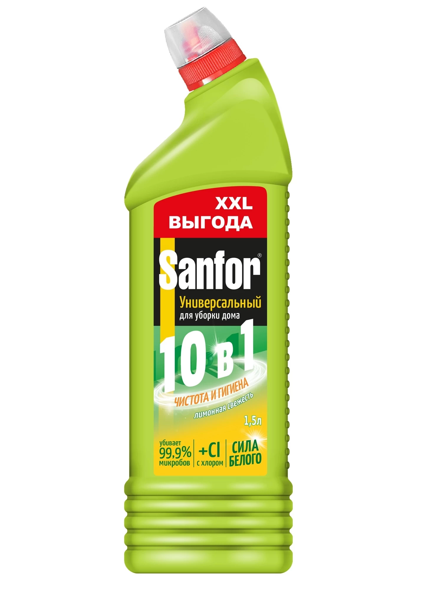 Средство чистящее дезинфицирующее SANFOR, Универсал, Лимонная свежесть, 1,5 л - 1 шт
