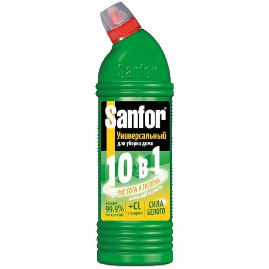 Гель Sanfor Лимонная свежесть легко и быстро очищает раковины, ванны и душевые кабины, унитазы, сливы и водостоки, керамическую плитку, любые твердые моющиеся напольные покрытия, настенные панели, моющиеся обои, бытовую технику. Подходит для уборки и дезинфекции туалетов для животных.