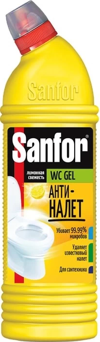 Sanfor WC Gel Лимон подходит для использования в ванной комнате и на кухне, для уборки и дезинфекции туалетов для животных. Средство идеально растворяет водный и мочевой камень и препятствует его образованию в унитазах, удаляет ржавчину и другие трудные загрязнения в туалете на длительное время. Нейтрализует запах мочи животных. Средство можно использовать для удаления жировых загрязнений, плесени, мыльных потеков.
