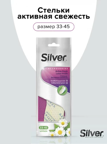 Стельки для обуви Silver Active-Fresh Latex Активная свежесть, всесезонные, размер 33-45