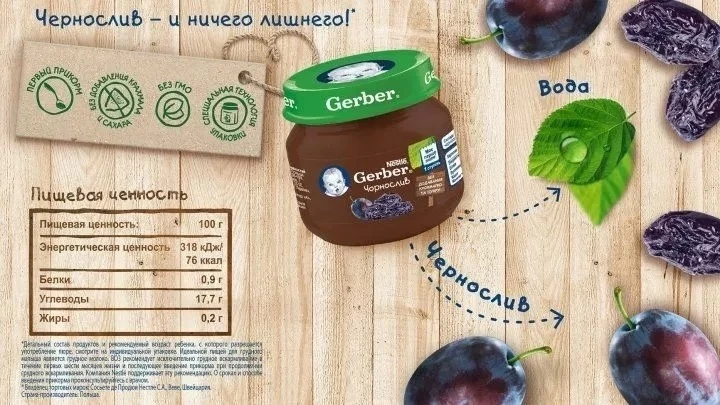 Пюре Gerber Только чернослив, с 4 месяцев, 80 г