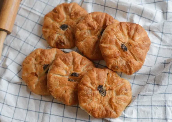 Мука пшеничная высшего сорта, картофель, лук репчатый, вода, масло подсолнечное рафинированное дезодорированное, разрыхлитель, дрожжи хлебопекарные, сахар-песок, соль поваренная йодированная, перец черный молотый.