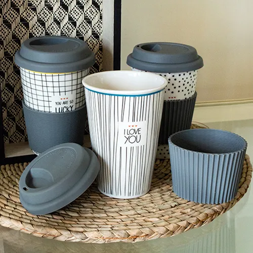 Фарфоровый стакан-кружка GRAFICA, объемом 390 мл, от Casa&Masa имеет силиконовую крышку, которая плотно прилегает к горлышку емкости и не дает напитку разлиться, а через удобное небольшое отверстие очень удобно пить. Благодаря толстым керамическим стенкам чаши, температура напитка надолго сохранится горячей или холодной, в зависимости от сезона и Ваших предпочтений.