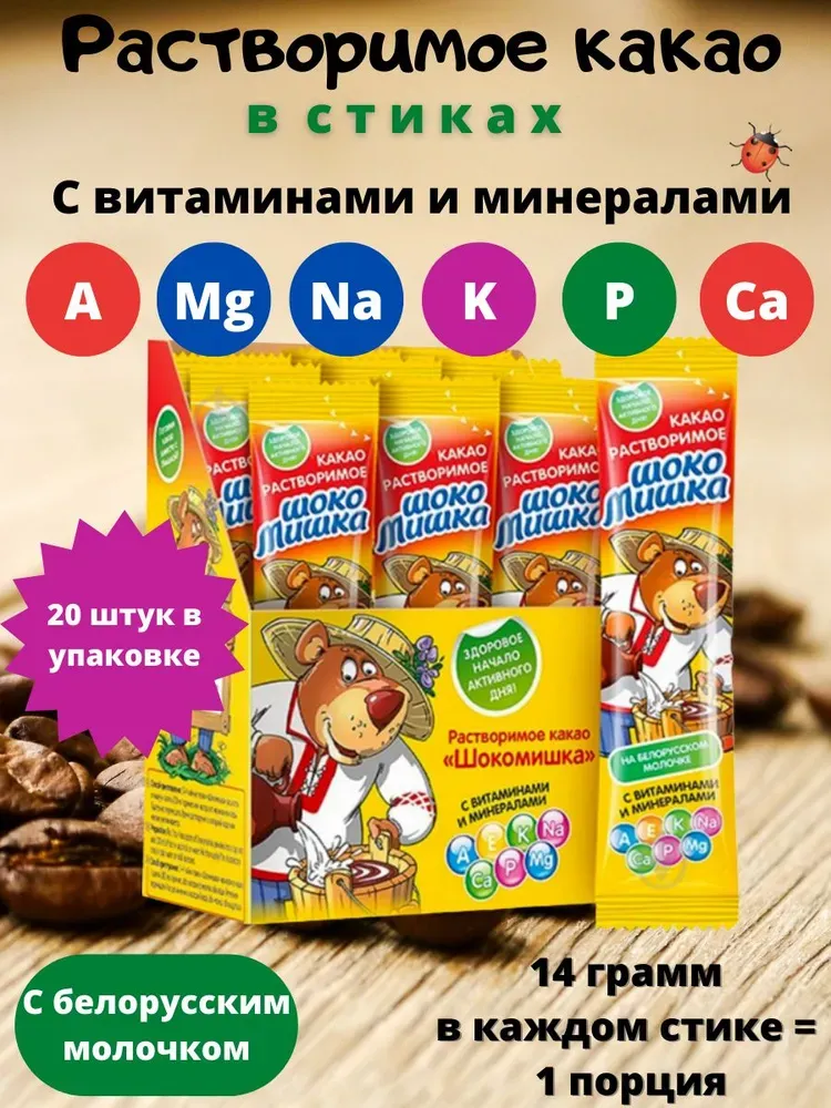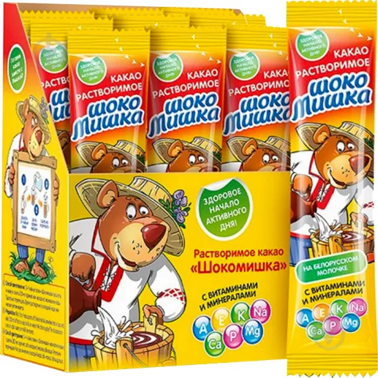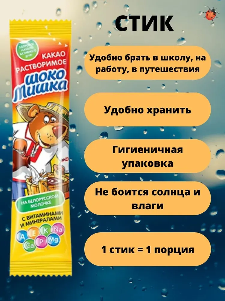 - Какао порошок ШокоМишка натуральный растворимый в стиках для детей 14г