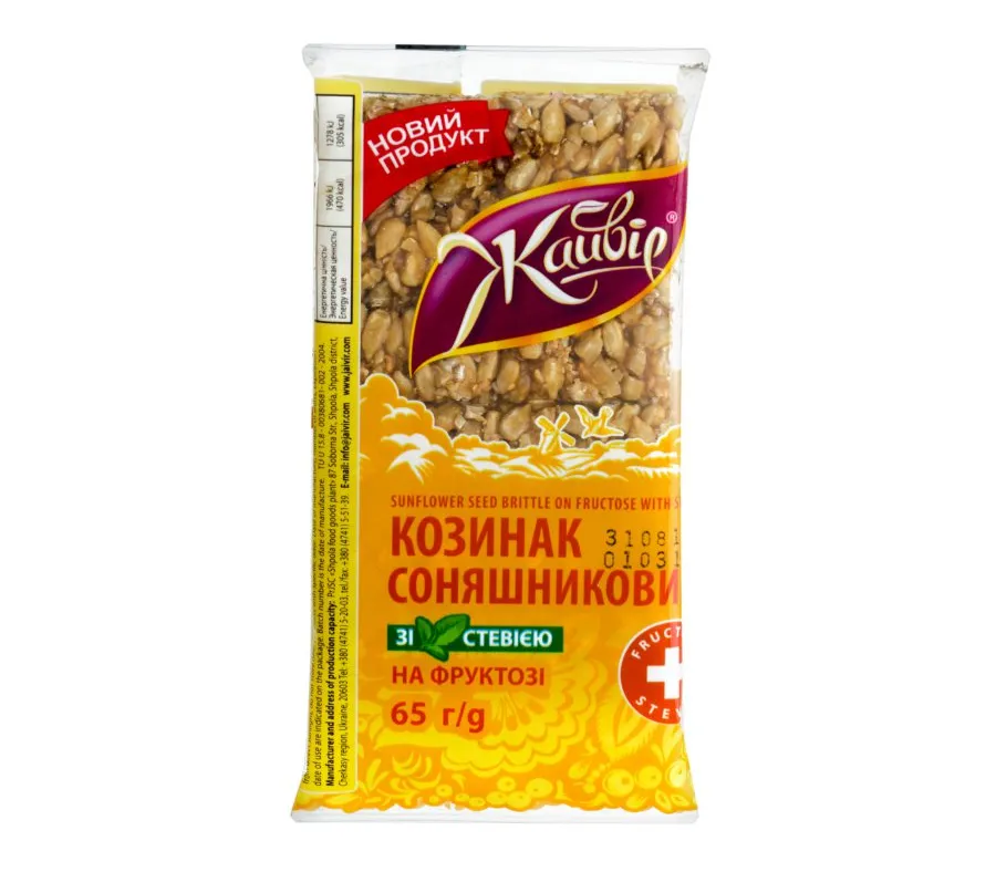 - Козинак Жайвир Подсолнечный на фруктозе со стевией 65 г