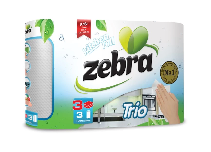 - Zebra Trio Полотенца кухонные 3 рул 3 слоя