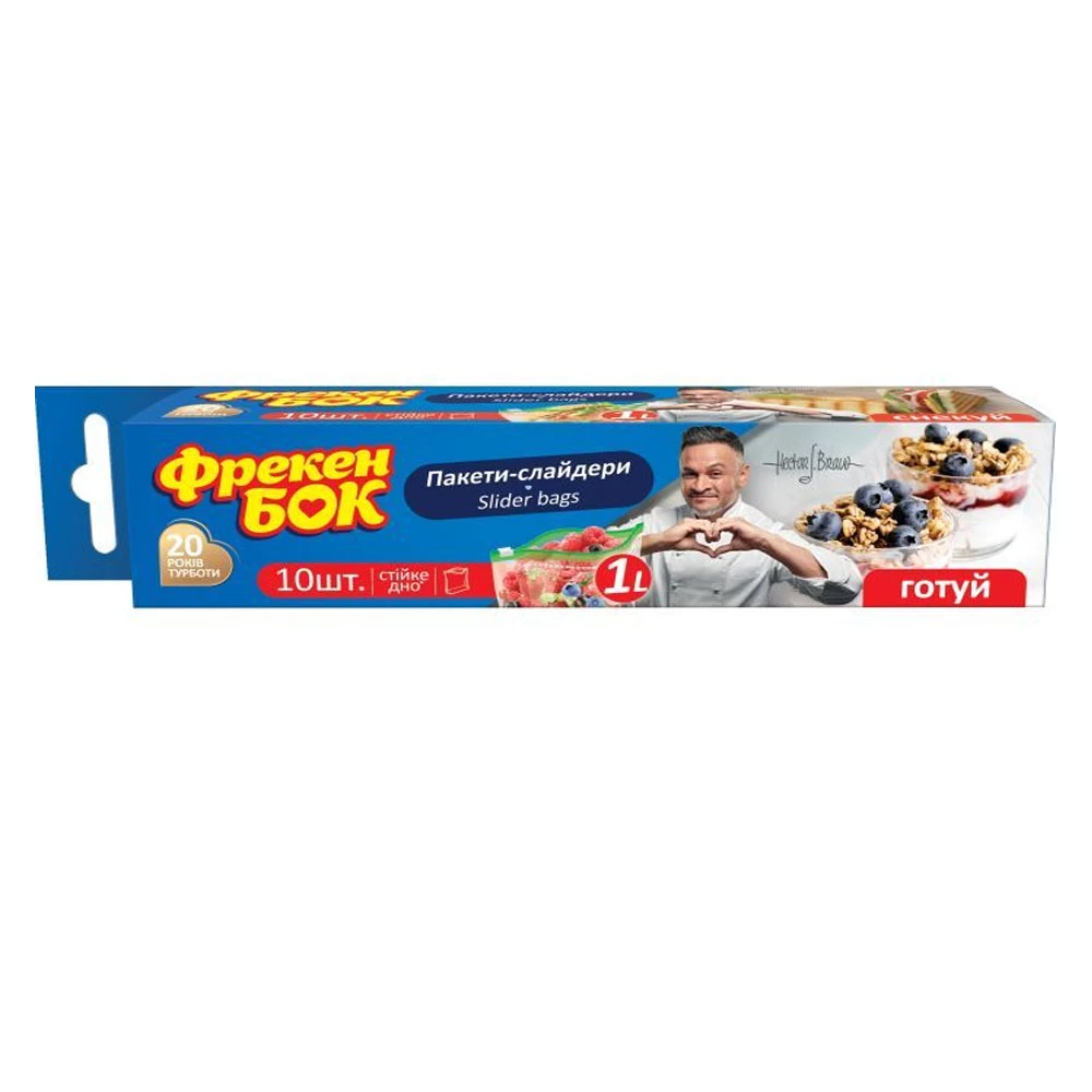Универсальные пакеты-слайдеры торговой марки Фрекен БОК предназначены для хранения, замораживания и упаковки пищевых и непищевых продуктов. Замок-слайдер надежно и герметично закрывает пакет и предотвращает вытекание жидкостей, а также упрощает процесс открывания.