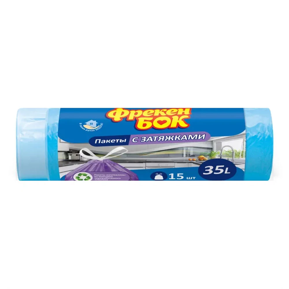 Сверхпрочные мусорные пакеты Фрекен БОК 35 л с удобной затяжкой отлично подойдут для стандартного мусорного ведра 10-12 л.