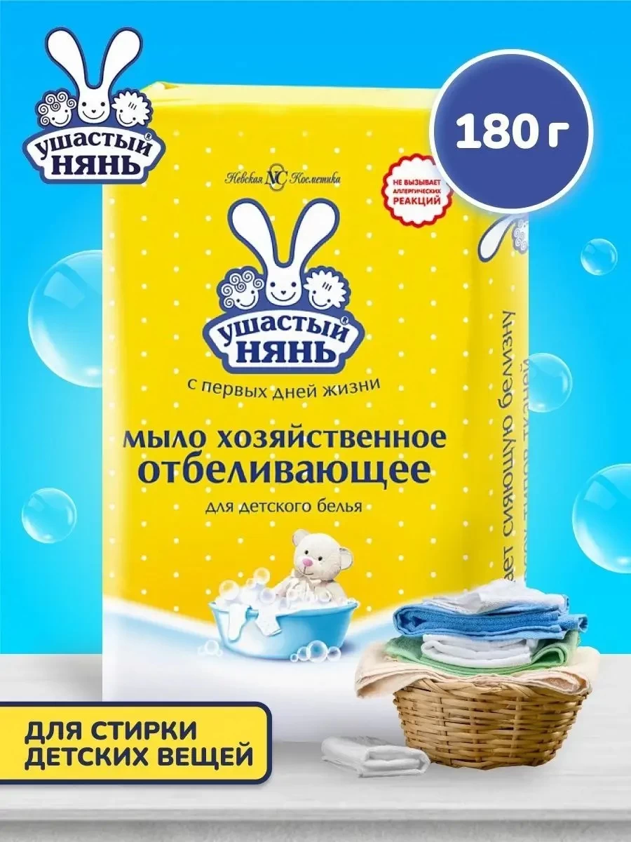 - Мыло хозяйственное Ушастый нянь с отбеливающим эффектом 180г