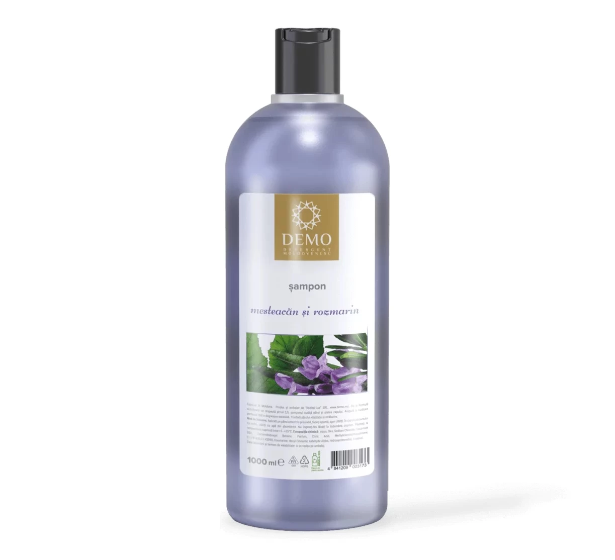 Демо-шампунь с ароматом березы и розмарина, восстанавливает объем и блеск, регенерирует и укрепляет структуру волос.