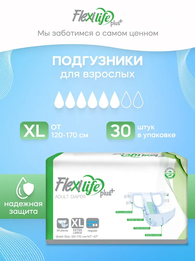 Flexi Life Plus Подгузники для взрослых XL 120-170 см 30 шт