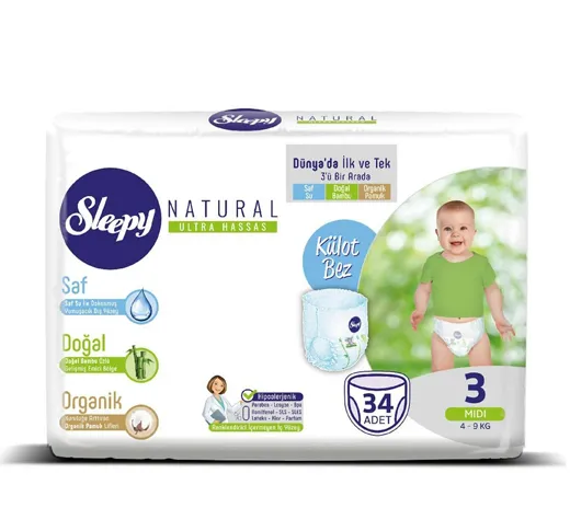 Трусики Sleepy Natural Sensitive 3 Midi (4-9) 34шт