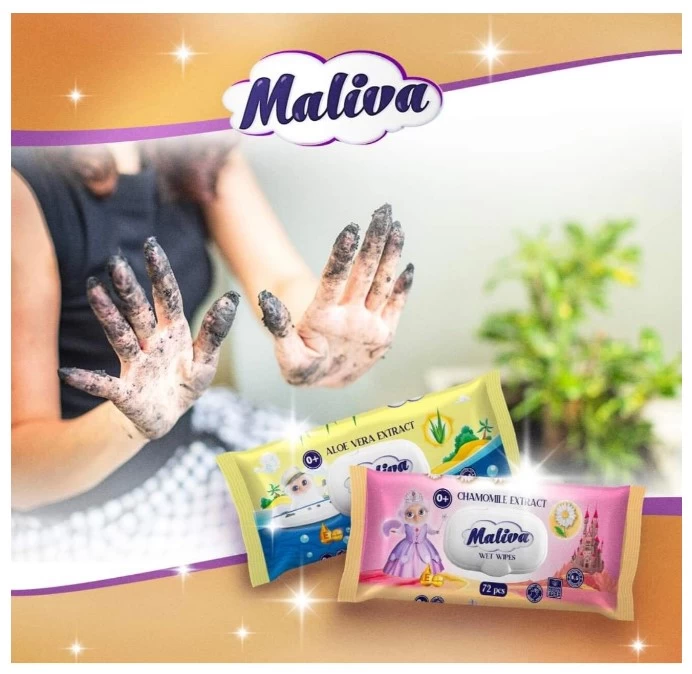 Обладая плотной, эластичной и прочной текстурой, детские салфетки Maliva чрезвычайно бережно воздействуют на кожу детей, в том числе новорожденных.