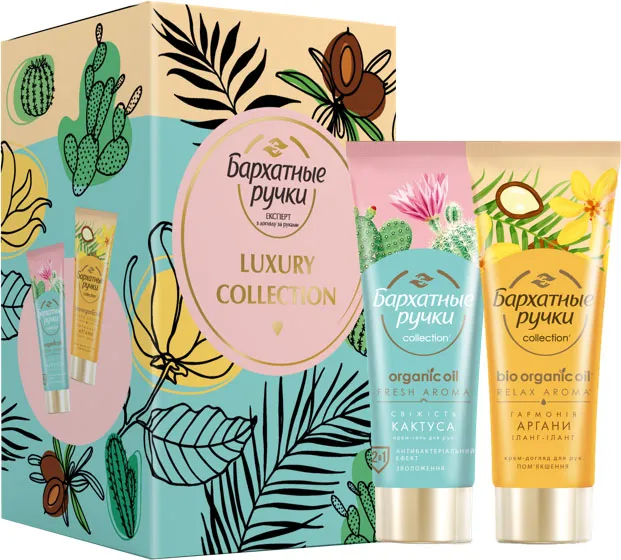 Подарочный набор Бархатные ручки Роскошная коллекция - это сочетание крем-геля для рук с алоэ и крема для рук с араганой, которые бережно ухаживают за кожей ваших рук.