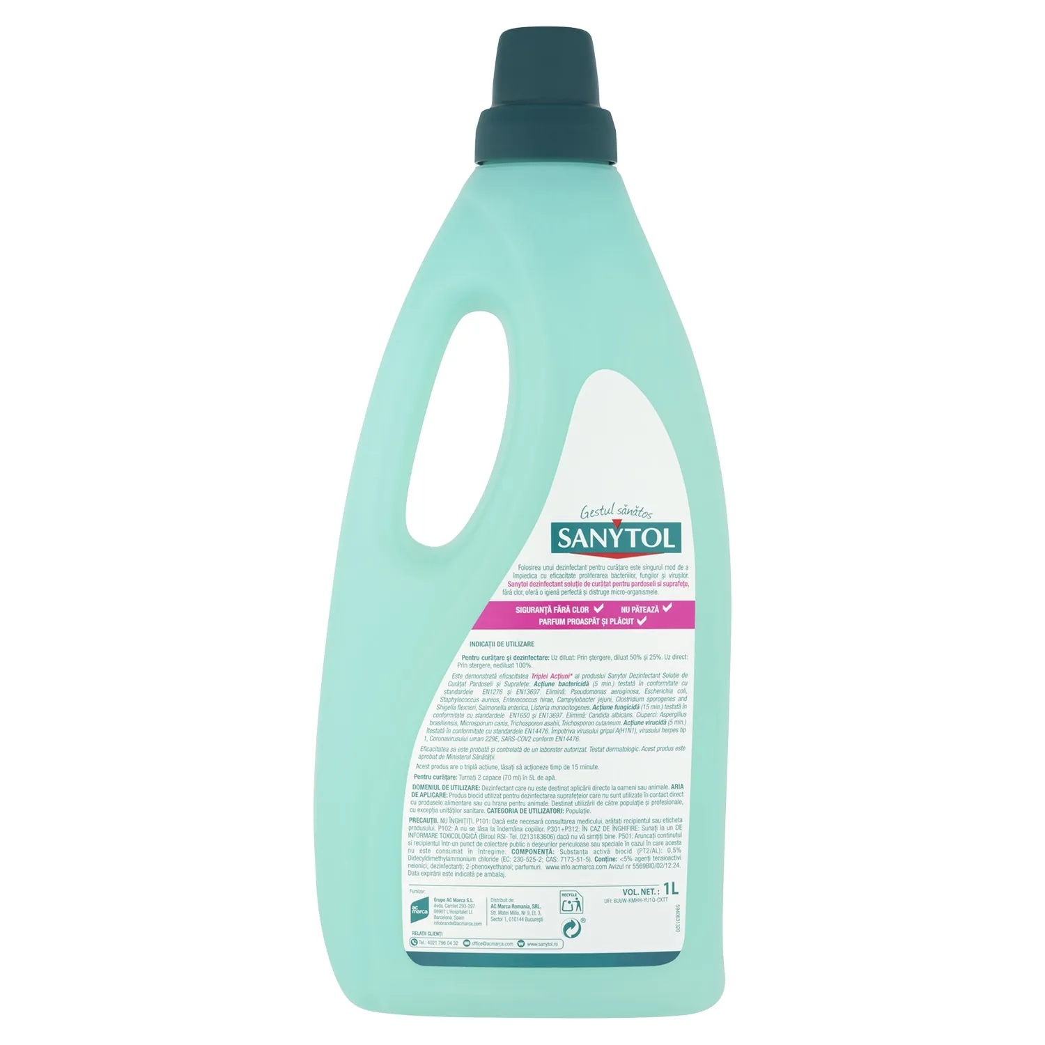 Средство Sanytol, эксперт в дезинфекции без хлора. Разработана уникальная композиция, которая очищает, удаляет жир и нейтрализует аллергены из пылевых клещей, пыльцы и кошек с эффективностью 99%. Обеспечивает идеальную дезинфекцию и удаления бактерий, вирусов и грибков. Он не содержит хлора, не окрашивает, оставляет свежий чистый аромат.