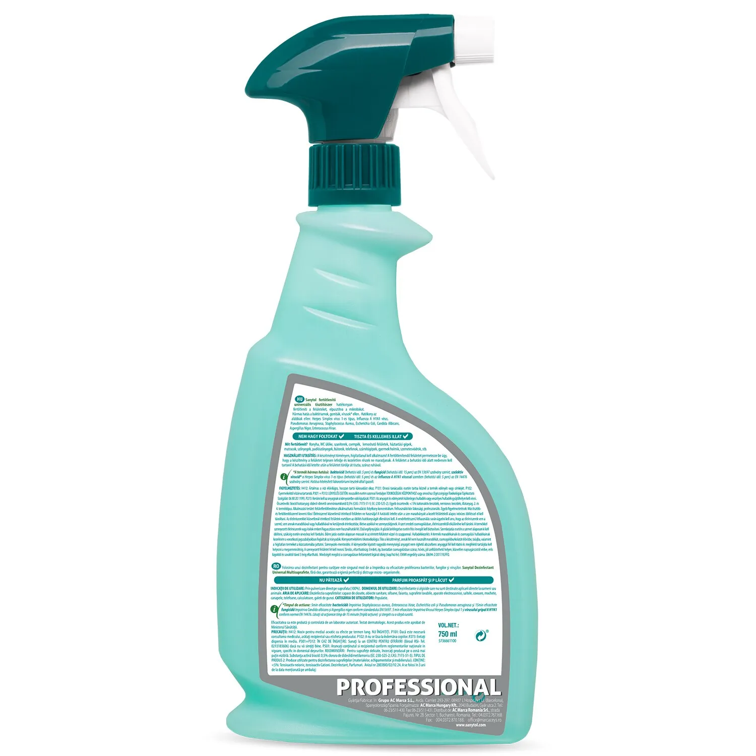 Sanytol Professional Multi-Spot Disinfectant 750 мл. Использование дезинфицирующего средства для уборки - единственный способ эффективно предотвратить размножение бактерий, грибков и вирусов. Он не содержит хлора и гарантирует идеальную гигиену, уничтожающую микроорганизмы. Дезинфекция поверхностей: крышки унитазов, сантехника, раковины, кафель, моющиеся поверхности, бытовая техника, матрасы, ковры, ковровые покрытия, диваны, телефоны, компьютеры, мусорные баки. После распыления на нужные участки оставьте на 10-15 минут, затем протрите салфеткой.