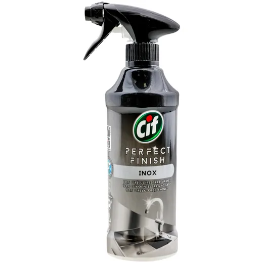 Cif Perfect Finish Spray для поверхностей из нержавеющей стали - это чистящее средство, которое входит в ассортимент специализированных продуктов. Средство представляет собой комплексное решение для удаления стойких загрязнений с любой поверхности из нержавеющей стали (плита, холодильник, мойка или вытяжка).