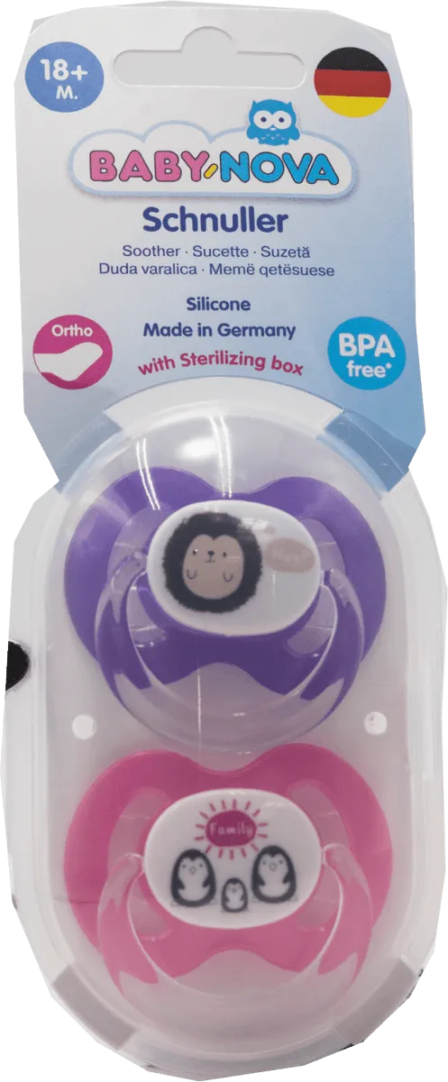 - Baby Nova Ортодонтическая пустышка, с кольцом, 18 месяцев+, силикон, без BPA, 2 шт. с коробкой для с