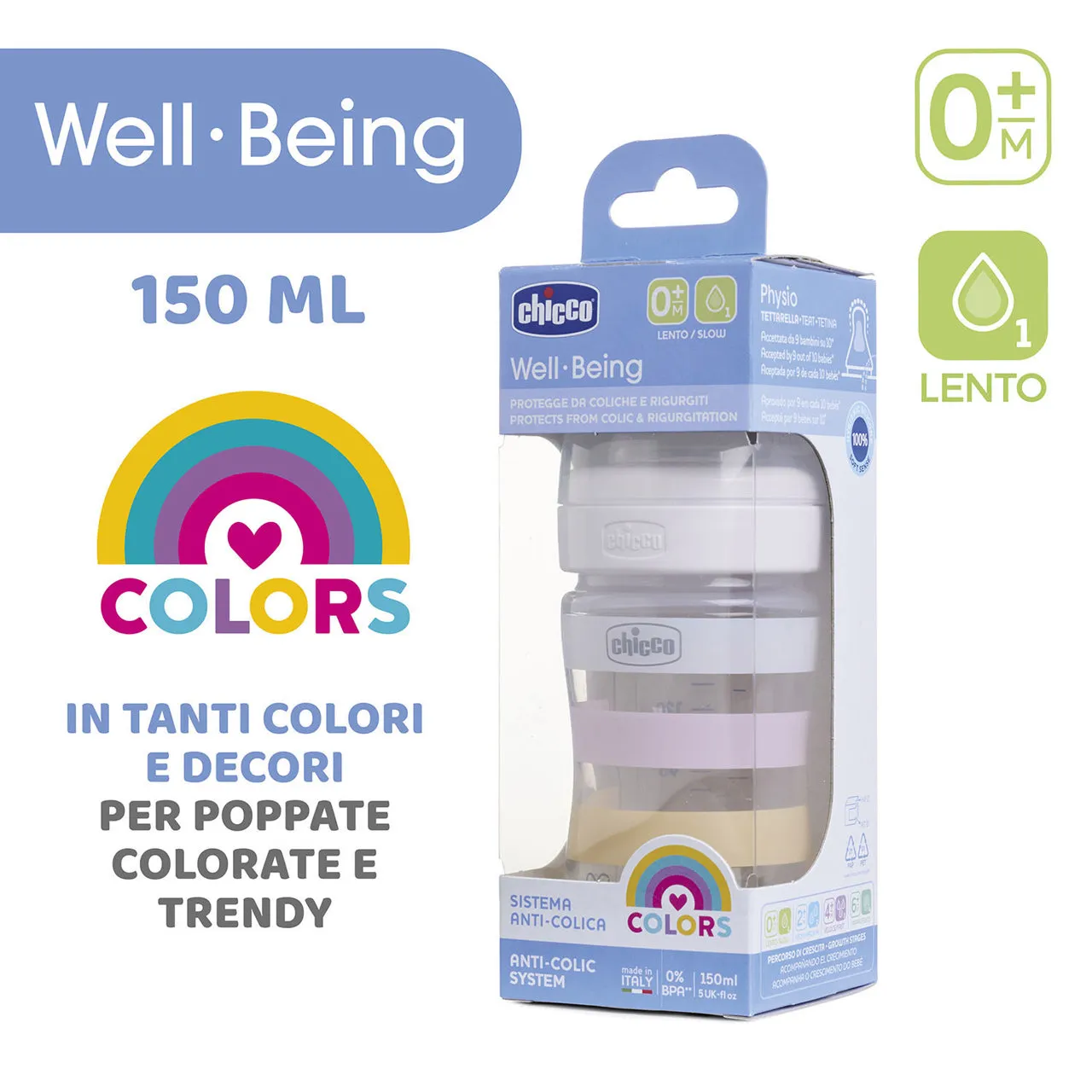 Благодаря специальной соске Physio из мягкого силикона с покрытием Soft Sense бутылочка Chicco Well-Being обеспечивает естественное и приятное кормление.