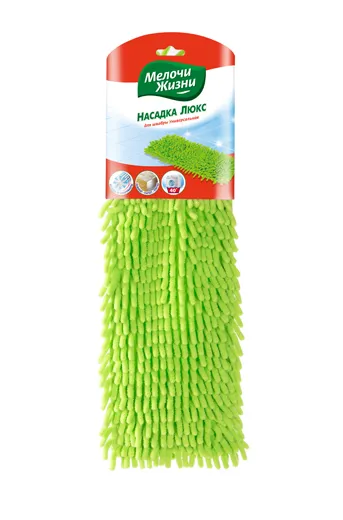 Насадка закреплена на жесткую планку, что позволяет ткани равномерно, не сминаясь, распределяться по поверхности пола. Она легко отделяется от основы и может стираться при температуре не более 60 градусов.
