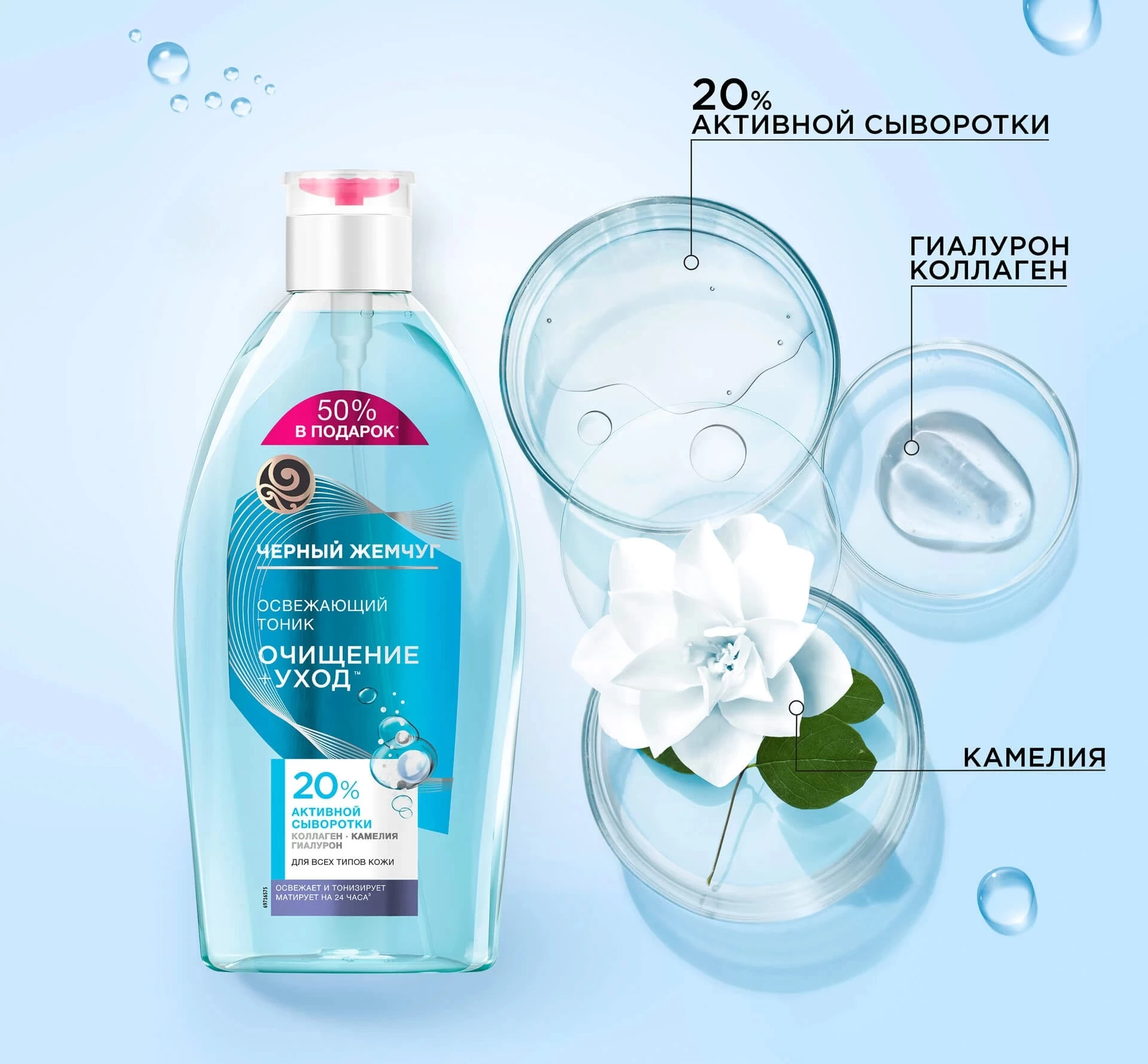 Тоник для лица очищающий Черный Жемчуг обеспечивает коже необходимый эффективный уход.