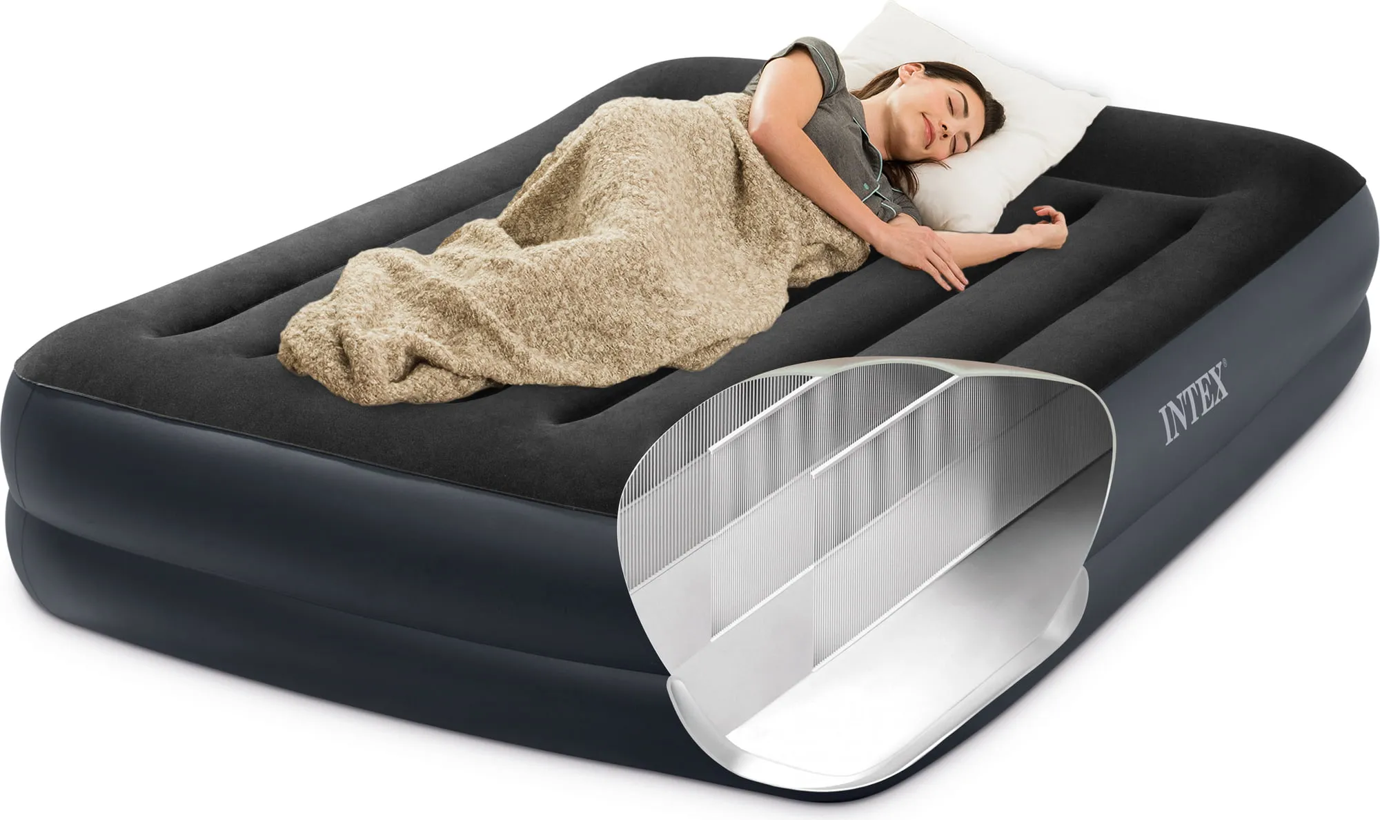 Встроенный электронасос позволяет быстро надувать и сдувать кровать и дает возможность отрегулировать ее упругость.