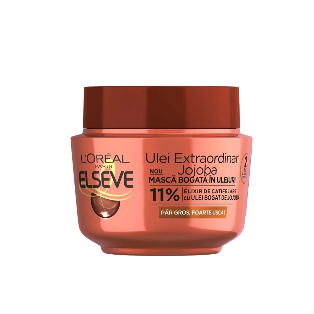 L'Oreal Paris Elseve Экстраординарная масляная маска для волос для сухих волос, 300 мл ПРЕИМУЩЕСТВА - интенсивно питает волокно волоса, не утяжеляя его; - может использоваться как на влажных, так и на сухих волосах. РЕЗУЛЬТАТ Невероятно шелковистые, блестящие волосы с удивительной текучестью. Применение: 1. Перед шампунем: для мгновенного чудесного питания нанесите на сухие волосы и оставьте на 5 минут. Для интенсивного питания нанесите на сухие волосы и оставьте на ночь. 2. После шампуня: Нанесите и оставьте на 2-3 минуты на влажных волосах для питания и легкого распутывания, затем смойте. 3. На сухие волосы, как жест для укладки: равномерно нанесите на волосы для облегчения процесса укладки и придания блеска. При попадании в глаза тщательно промыть водой. Нежный и инновационный: Входящее в состав масло жожоба обеспечивает исключительные сенсорные ощущения и идеальное питание, не утяжеляя волосы.