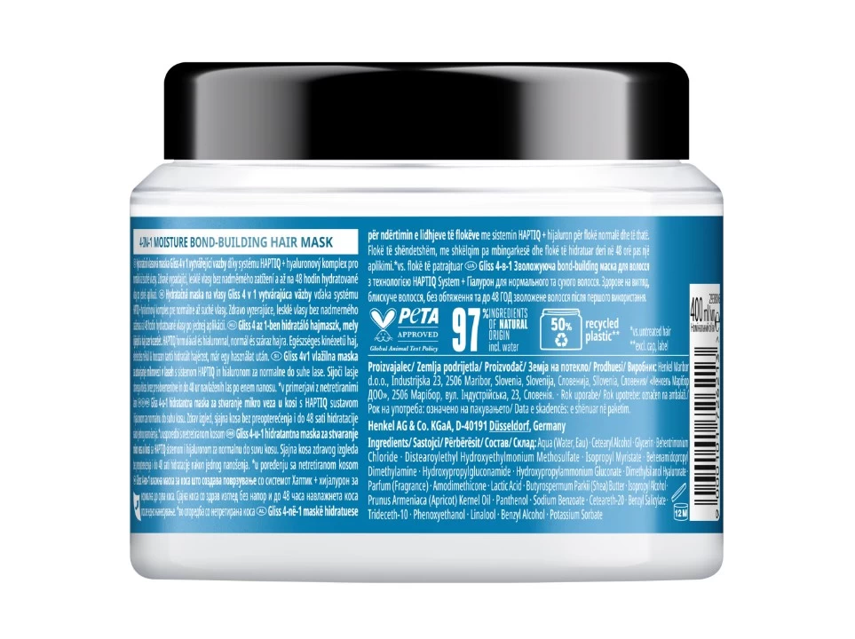 Schwarzkopf Gliss, Aqua Revive 4 в 1 увлажняющая маска для волос, 400 мл - Питательная маска для нормальных и сухих волос.