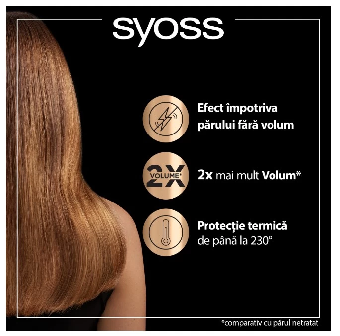 Средство обогащено витаминным комплексом, состоящим из пантенола и ниацинамида, для укрепления структуры волос. Термозащитный спрей Syoss Keratin Volume создает объем волос от корней, придавая им силу и густоту.