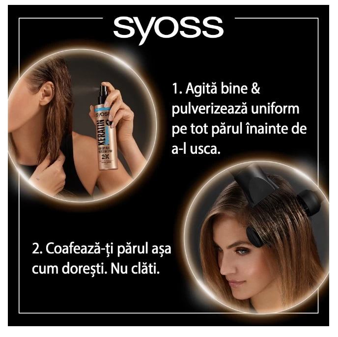 - Syoss Спрей для волос Keratin & Volume Защита при сушке феном 200 мл