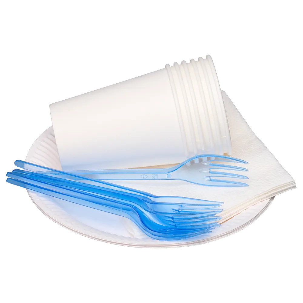 Яркий праздничный набор одноразовой посуды, который состоит из 6 стаканов, 6 тарелок, 6 салфеток и приборов из качественного пластика, имеют матовое приятное покрытие, не скользят в руке. Применяются как для холодной, так и горячей пищи и напитков. Прекрасно подойдут для празднования детского Дня рождения, корпоратива или пикников на природе. Экологически чисты и безопасны в использовании.