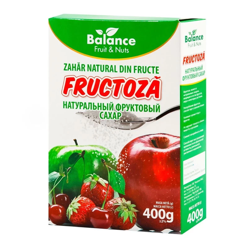 Кристаллический фруктовый сахар (фруктоза). Слаще обычного сахара примерно в 1,2 раза, поэтому для того же вкуса требуется меньше продукта.