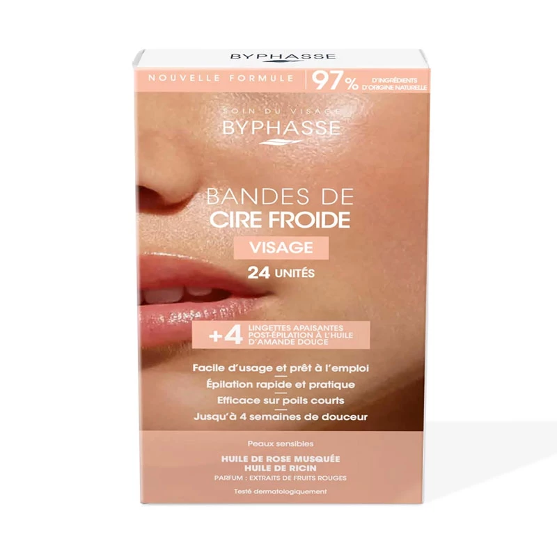 Benzi depilatoare cu ceară rece Byphasse pentru față — epilare perfectă, rapidă, practică și de lungă durată.
