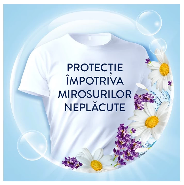 Balsamul de rufe Lenor Lavender & Camomile (Prospetime de lavanda) pentru asternuturi proaspete pana la 1 saptamana.