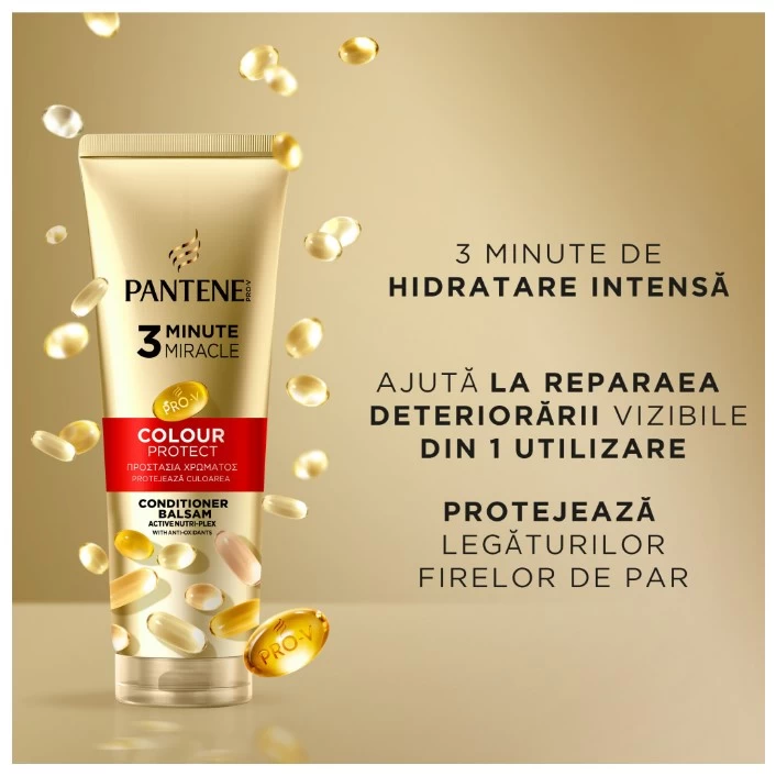 Secretul unui par vopsit stralucitor, cu aspect sanatos: Balsamul de par Pantene Pro-V Color Protect 3 Minute Miracle iti transforma vizibil parul in doar 3 minute.