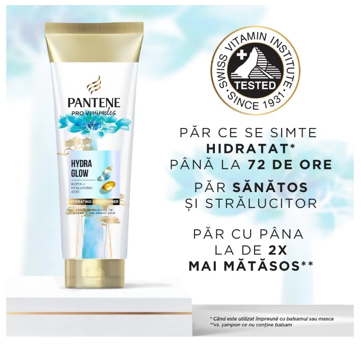 Balsamul de par Pantene Pro-V Miracles Hydra Glow transforma parul uscat cronic, fara stralucire, intr-un par matasos cu stralucire sanatoasa.