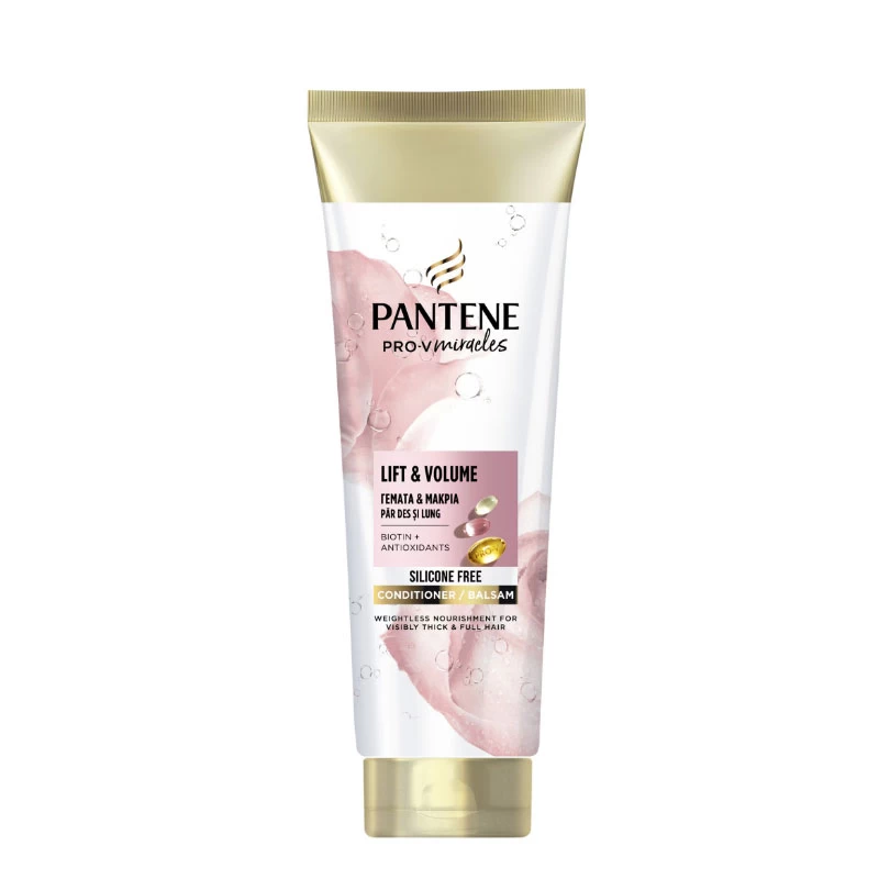 formula balsamului de par Pantene Pro-V Miracles Lift & Volume ajuta la fortificarea parului subtire si fara vlaga impotriva deteriorarii cauzate de coafare.