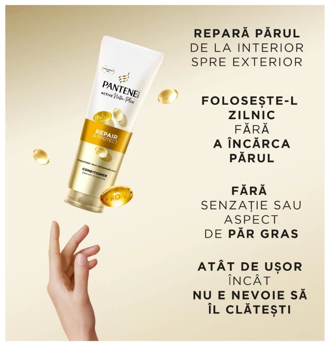 Aspect plin de prospetime: balsamul de par Pantene Repair & Protect hraneste parul cu amestecul nostru unic Pro-V pentru un aspect plin de prospetime.
