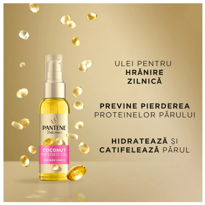 Infuzat cu cocos: Uleiul de par Pantene Pro-V Definded Curls este infuzat cu cocos, hidrateaza în profunzime si catifeleaza parul cret.