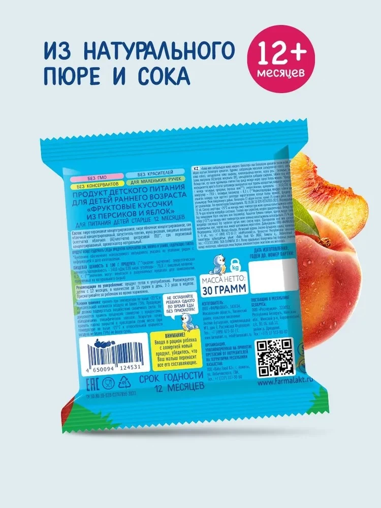 - Cand o sa cresc Bucati de fructe mar si piersici (12 luni +) 30 gr