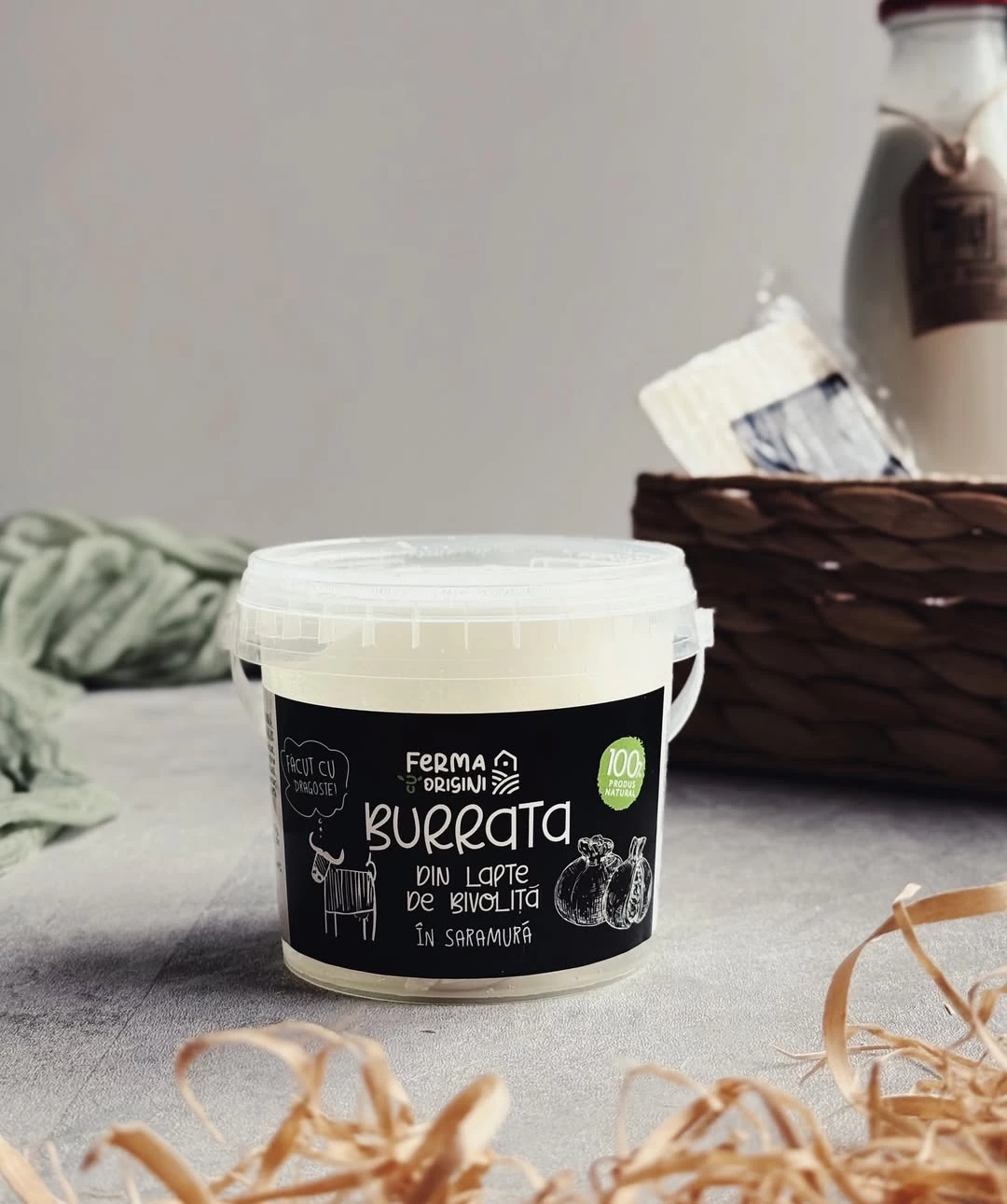 Burrata Ferma Origini este un sortiment de brânză proaspătă, fină și cremoasă, inspirată din tradiția italiană. Cu o textură delicată la exterior și un interior moale de smântână și mozzarella, burrata este ideală pentru salate gourmet, aperitive rafinate sau pur și simplu servită cu pâine proaspătă și ulei de măsline.