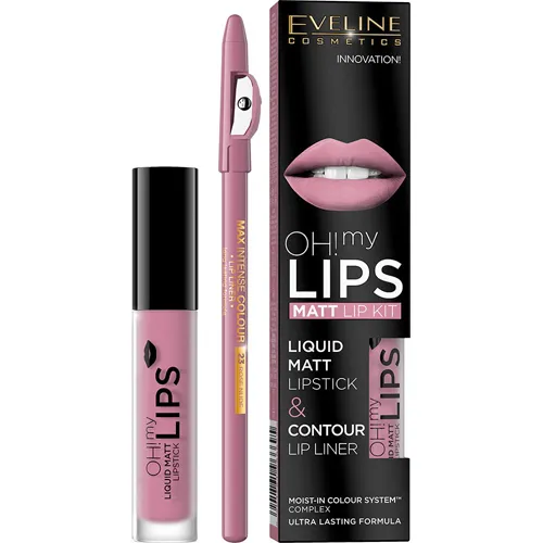Eveline Set №3 Ruj de buze mat Oh My Lips 4,5ml +Creion de buze Max intens color